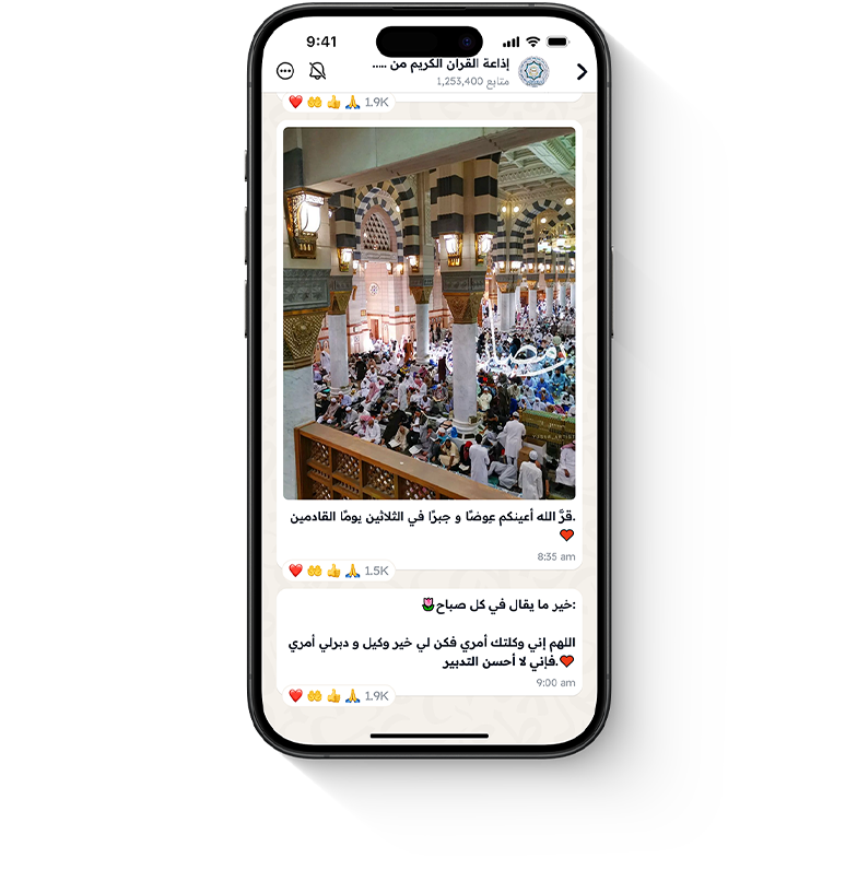 استمتع بالبث المباشر لتلاوات روحانية، وأذكار يومية، ومحتوى ديني يملأ يومك بالسكينة والإيمان.