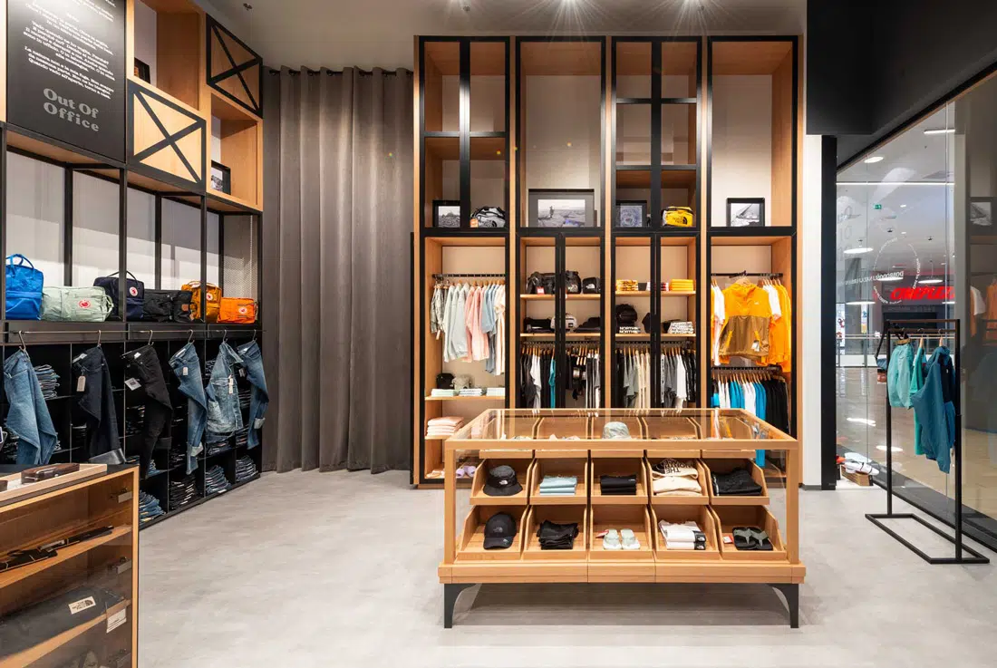 - تقسيم المخزن إلى أقسام واضحة لكل نوع: أحذية، تيشيرتات، جاكيتات، إكسسوارات.