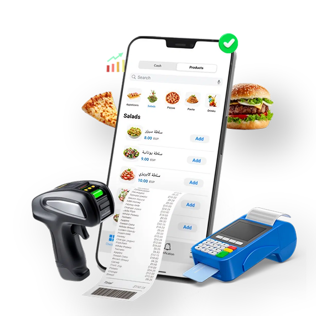 متوافق مع أي جهاز: يتيح لك برنامج إدارة المطاعم العمل وتعديل الإعدادات بسهولة من أي جهاز، سواء كان كمبيوتر مكتبي، جهاز لوحي، أو هاتفًا ذكيًا. يمكنك التنقل بين الأجهزة بسلاسة دون أي تعقيد، مما يمنحك مرونة كاملة في إدارة مطعمك ومتابعة العمل في أي وقت ومن أي مكان.