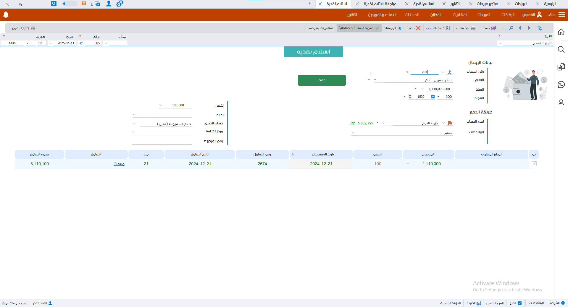 | 04-02-2025 | 15 | 25000 جـ | 10000 جـ | 1 | خصم على عميل بالتقسيط |