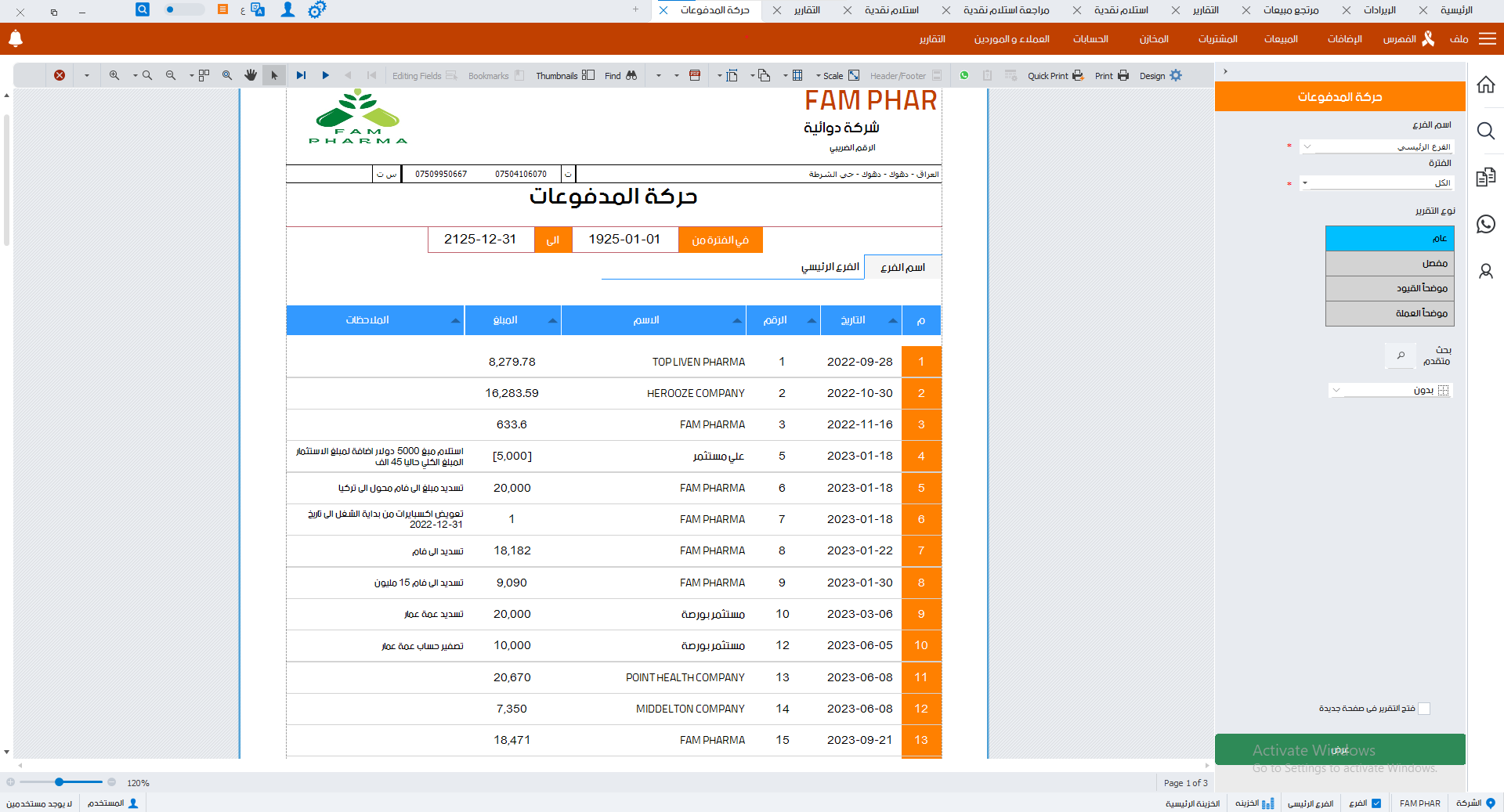 البرنامج بيساعدك في إعداد تقارير ضريبية شاملة لجميع المعاملات الخاصة بالضرائب بشكل دوري، وتقدر تقدمها للجهات المعنية بسهولة.