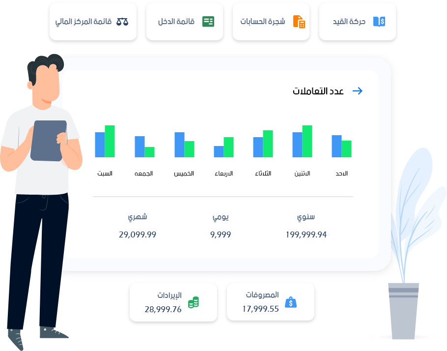 - إدارة المصروفات والإيرادات وتتبعهما.