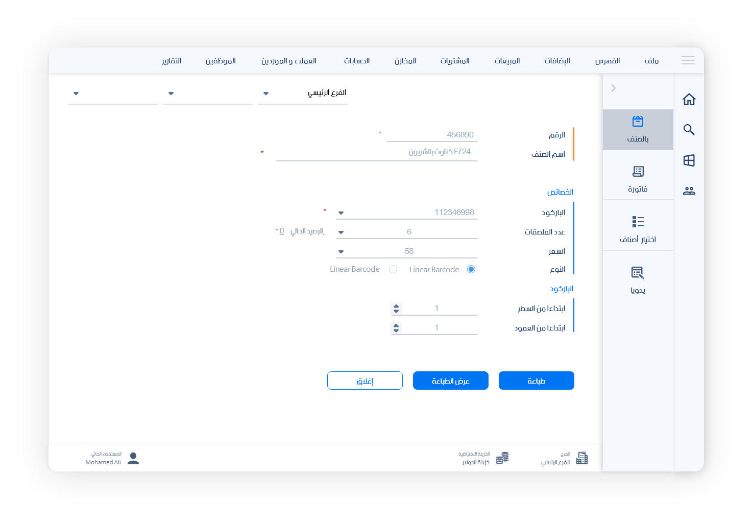 - طباعة الباركود