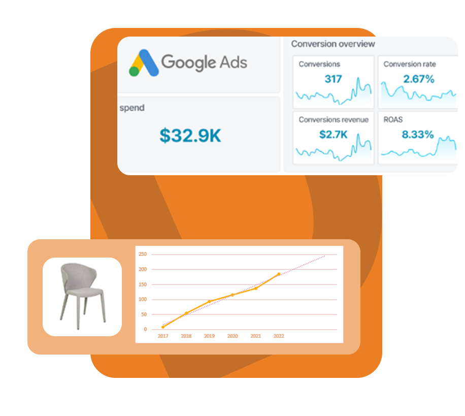 تعرف بعمق على المنتجات الأكثر مبيعًا، وراقب أداء المبيعات بمرور الوقت وكن دائمًا على اطلاع كامل على طلباتك، والزوار، ونسب التحويل في مكان واحد سهل الاستخدام.
