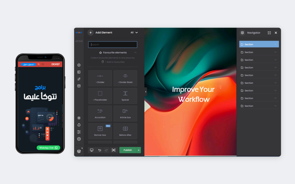 - أدوات التصميم: هناك الفوتوشوب وأدوبي XD ، بجانب Canva وغيرهم، وهناك مصممي المواقع مثل elementor وbethem، ولكن ديكسيف توفر لك مصمم المواقع الخاص بها.